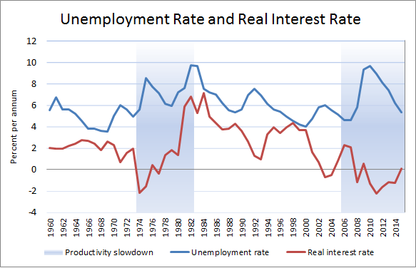 Another thing to keep in mind is that the asset classes that constitute safe assets can change over time. In my recent piece on secular stagnation, I noted that a "flight to safety" seems to occur near regime changes that imply productivity slowdowns. In 1974, investors flocked to gold and real estate--they ran away from USD (rapidly rising price-level) and UST (rapidly rising nominal interest rates). In 2008, the situation was quite a bit different--both USD and UST were highly sought after safe havens (with investors fleeing real estate).
